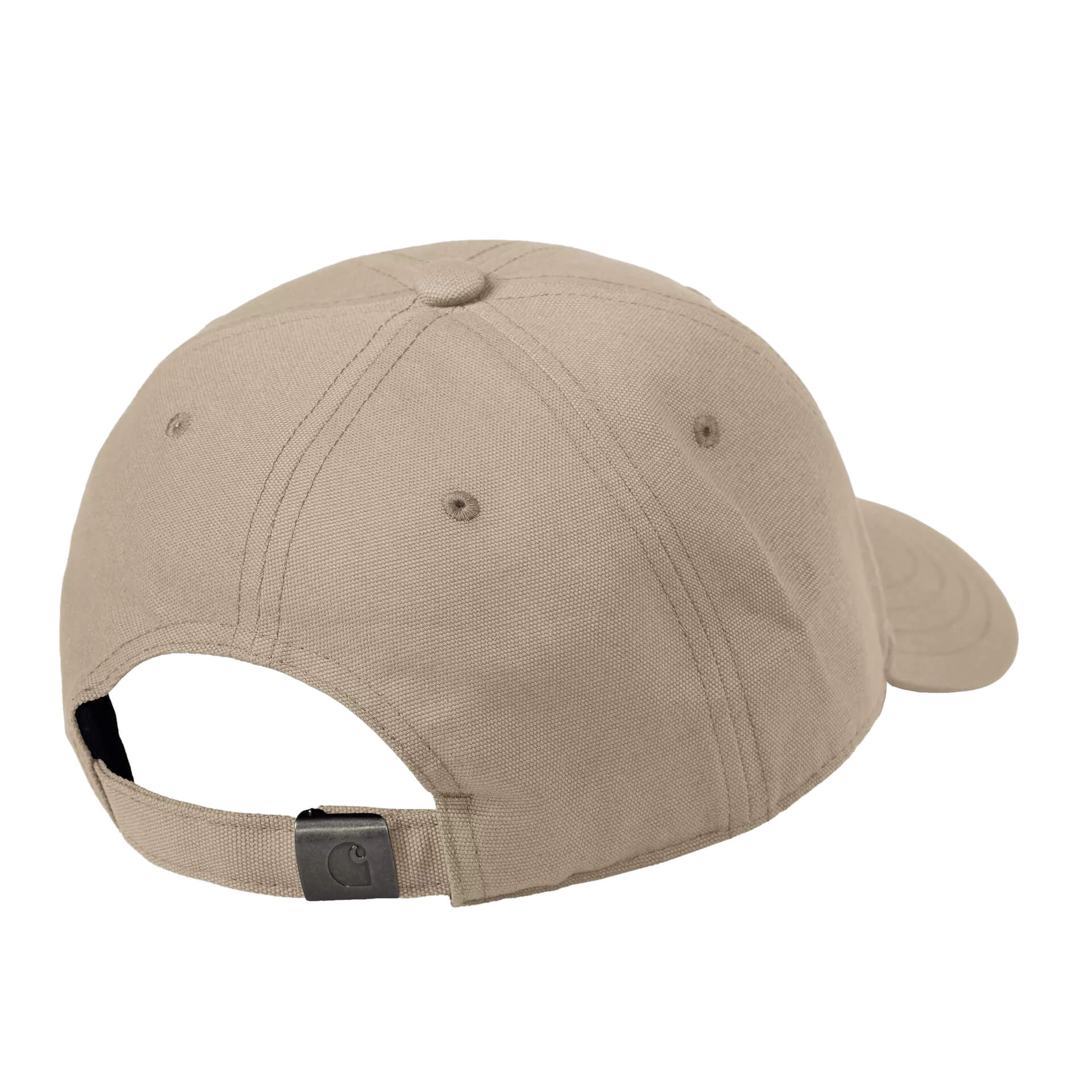 Das vorgewaschene Carhartt Work in Progress Canvas Script Cap eignet sich für einen Kopfumfang von 57-62 cm / 22,4-24,4 Zoll. Es ist aus sechs Panels gefertigt und kann mit einem Riemen sowie einer Metallschnalle individuell angepasst werden.
