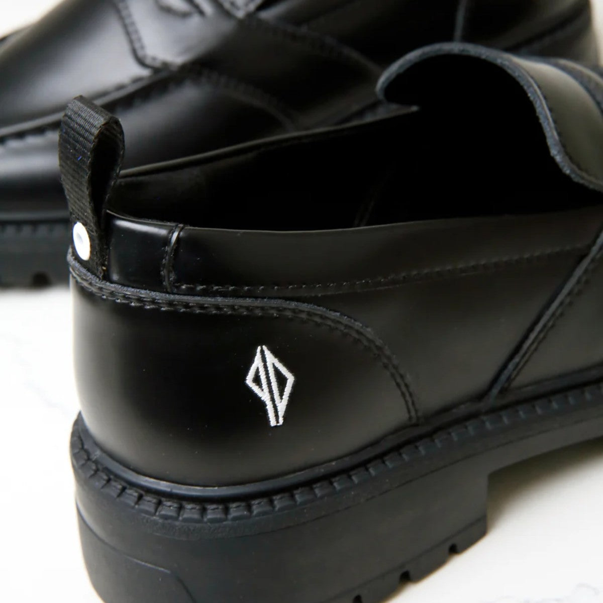 Der Cohiba PD Loafer ist eine komplett neue Konstruktion mit einer speziell für Dustin Dollin entwickelten Außensohle, gefertigt aus edlem, hochwertigem schwarzem Leder und mit PD-Branding.